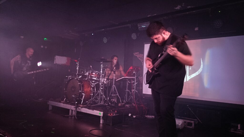 Neotřelé a neoposlouchané riffy rozpohybovaly dav a kdo přišel nemohl litovat. Osobně jsem byl fakt mile překvapen a v některých ohledech mě DVNE nadchli vlastně ještě více, než hlavní hvězdy večera Night Verses. Jejich nástup byl bez větších úvodů a prodlev. Opět o něco dřív oproti původnímu plánu a překvapilo mě, že minimálně v začátku bylo v obecenstvu o něco méně lidí. Začalo se nekompromisní vypalovačkou Arrival z posledního alba, které je podle mého úsudku zatím také jejich nejpovedenější. Recenzi u nás také najdete a to konkrétně zde. Temperamentní nástup ukázal vlastně jak bude vypadat celý večer. V první řadě musím vypíchnout horší zvuk. Kapela byla hlasitější a detailů ubylo, což je škoda zejména kvůli maličkostem, které v hudbě Night Verses jsou.Hrálo se hlavně ze dvou posledních řadovek, ale musím říci, že jsem měl přesně opačný problém. Trio se mi lépe poslouchá doma. Hlavně zběsilé tempo bylo někdy za hranou únosnosti a nebyl jsem sám, kdo s tím měl ten večer problém. Někdy ubrat méně na intenzitě by asi prostě neuškodilo. Kluci mají i klidnější věci a fakt by je mezi intenzivní vypalovačky bylo vhodné mixnout. Aric je hyperaktivní bubeník a pokud je zde absence zpěvu, po určité době je toho zkrátka příliš. Celkem zaznělo dvanáct věcí a nejvíce jsem si užil 8 Gates of Pleasure, Rose Wire, Desire to Feel Nothing nebo jam, kdy kapela improvizovala. Velmi efektní a působivé byly také výlety Arica Improty mimo sestavu respektive nad ní, kdy burcoval obecenstvo. Intenzita se kterou hraje je neuvěřitelná. Dále musím vyzdvihnout kytaristu, který sice celou dobu působil jako, že se v klubu ten večer ocitl náhodou. Jeho hra je však originálním způsobem nápaditá, jak například předvedl v Bound To You. Co mě překvapilo byla skromnost. Všichni se ochotně podepisovali kamkoli a rozdali, co mohli: Setlisty, trsátka, paličky a člověk měl možnost si i krátce pokecat nebo podat s hudebníky ruku a poděkovat.